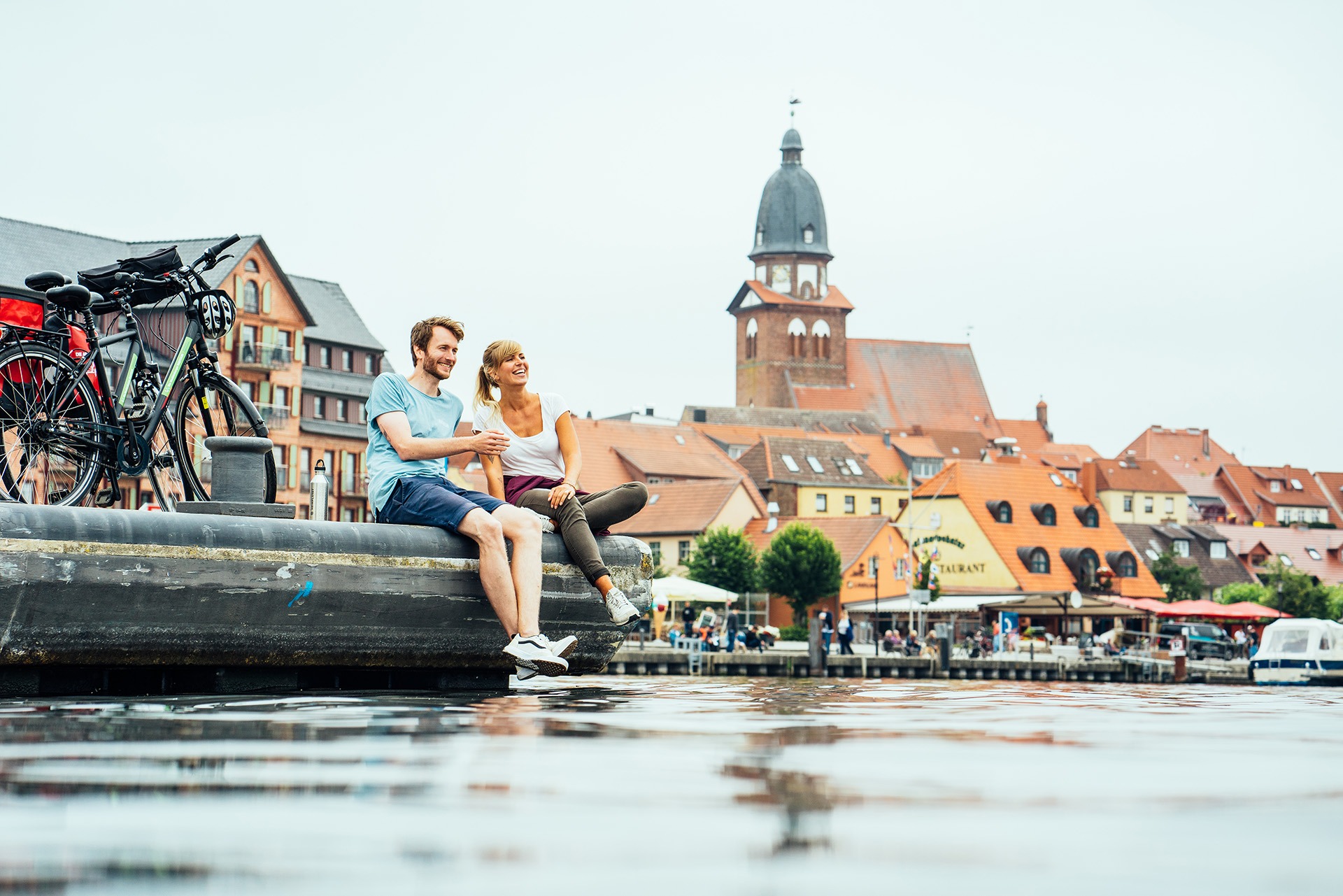 Die Reise geht weiter entlang des Kölpinsees, durch die wildromantische Nossentiner-Schwinzer-Heide und die charmante Kleinstadt Krakow am See, bis schließlich die Barlachstadt Güstrow erreicht wird. Nur noch ein paar Pedalenschläge, dann ist die Etappe geschafft! Die aufregende Tour endet im lebendigen Hafen von Rostock an der wunderschönen Ostseeküste. Genießt die beeindruckende Kulisse dieser Hansestadt oder unternehmt einen Ausflug in das beliebte Ostseebad Warnemünde. Dort erwarten Euch ein breiter Sandstrand, der nostalgische Leuchtturm und eine bunte Hafenszenerie am Alten Strom.